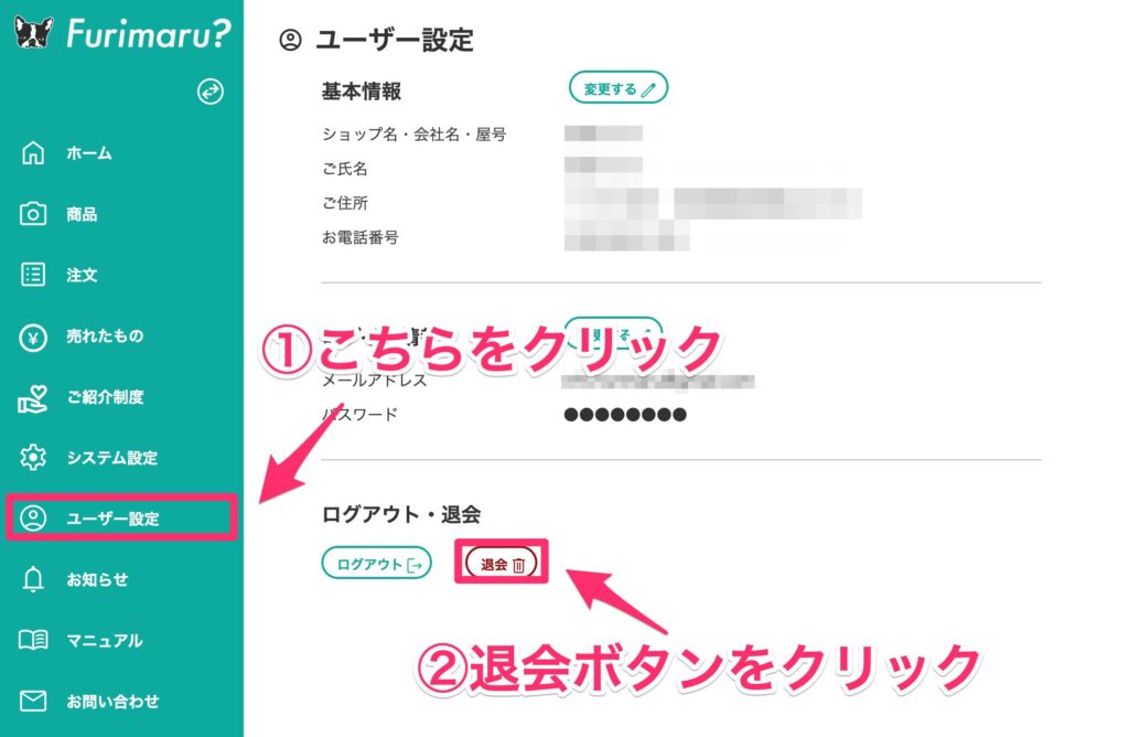 Furimaruを退会する際は、「ユーザー設定画面」から手続きを行うことができます。